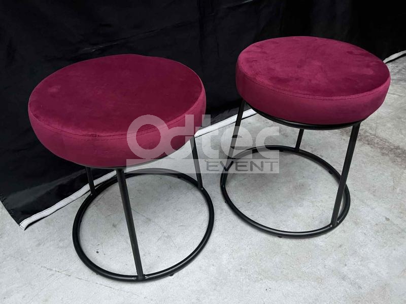 DESCRIPTION : Support bas tabouret en métal noir équipé d'une assis en textile Bordeaux (Velours) ou comment joindre l'esthétique et le confort. [REF675]