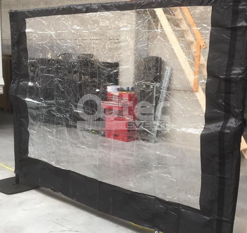DESCRIPTION : Cette paroi de 3m de largeur est entièrement composée d'une fenêtre panoramique transparente. La fenêtre est entourée d'une bande de polyester noire [REF457]